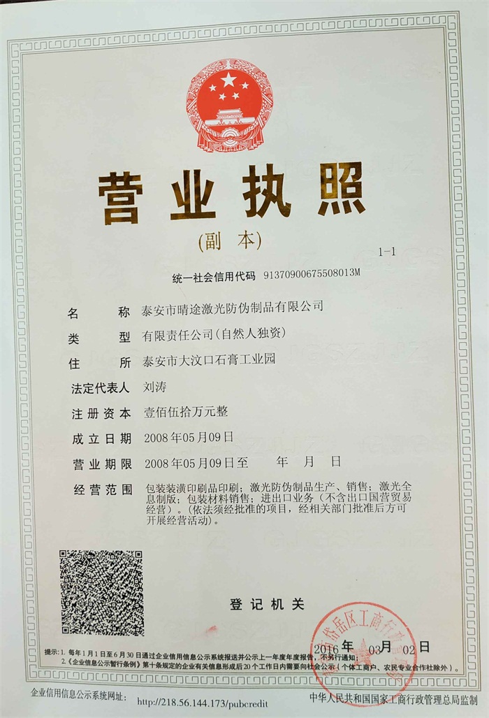 泰安市晴途激光防偽制品有限公司
